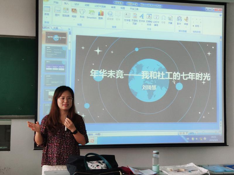 2019年9月4日14时30分,365体育官网入口在长安校区格物楼401教室举办了以“年华未竟——我和社会工作的七年时光”为题的讲座。本次讲座由西安交通大学社会工作硕士、儿童乐益会项目兼技术官员刘琦慧担任主讲,我院靳宇老师担任主持人。我院18级社会工作专业全体同学聆听了讲座。