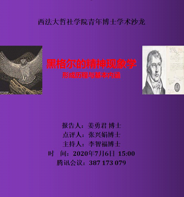 本次学术沙龙的主题是“黑格尔的精神现象学——形成历程与基本内涵”。姜勇君博士在报告中指出:黑格尔的《精神现象学》是西方哲学最重要的经典之一。然而,这是一部谜一般的著作,不仅仅其内容神秘莫测,而且后人对它的形成过程、整体结构以及它在黑格尔整个体系中的位置等等问题争论不休。Theodor Haering对这部著作的语文学研究让人印象深刻,他指出这部著作缘起于黑格尔一个相当突然的决定,它是在非常短的时间内完成的,而且内容和全书的体量随着排印不断变化。Otto Pöggler对Theodor Haering的反驳同样令人印象深刻。Pöggler令人信服的反驳了Haering的大部分观点,但他也同意这部书的原初计划随着写作的深入而发生变化,他认为“意识经验的科学”在前三章就已经结束,而从第四章开始就进入了“精神现象学”。就黑格尔哲学而言,这部书与成熟时期的著作相比可能显得有些“稚嫩”,但这并不妨碍它成为黑格尔最有影响力的著作。在这部著作中,黑格尔对自我意识的讨论启发了后世很多有影响的哲学家。黑格尔认为,我们不能在个别意识范围内讨论自我意识,因为自我意识不是“我”内部的事情,而是“我们”之间的事情。