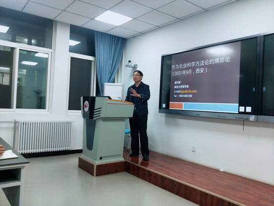 9月26日晚,我院邀请到南京大学哲学系博士生导师潘天群教授在南校区5-202室作了题为“作为社会科学方法论的博弈论”的学术讲座,本次讲座由副院长郭明俊教授主持,李智福副教授、赵精兵博士、王荣虎博士、西安交通大学丁晓军副教授、西安交通大学研究生、西北工业大学研究生以及我院众多研究生和本科生听取讲座并进行了热烈的研讨。