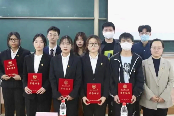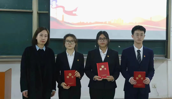 团委书记慕婧为第十六届学生会优秀成员颁发荣誉证书,为第十七届学生会工作人员颁发聘书。