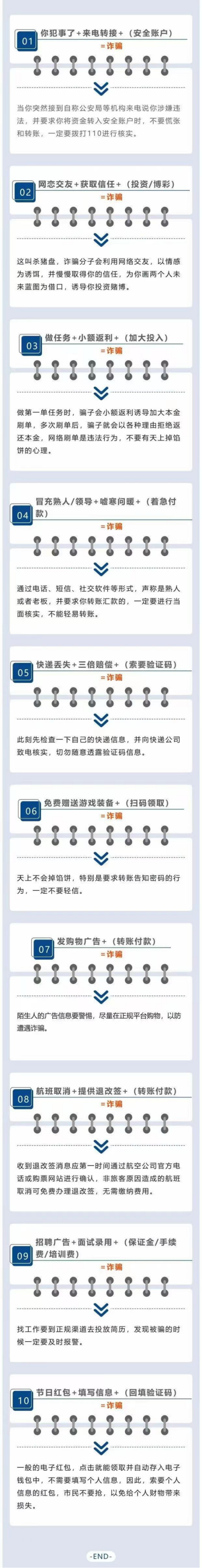 网络诈骗花样多,莫把虚拟当现实。面对着花样繁多的诈骗手段,我们要擦亮眼睛,谨慎思考,提高金融防骗意识,练就防诈骗,反诈骗的自我保护心理,守好自己的钱袋子。