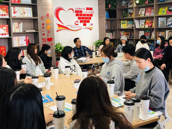 在参观实践过程中,机构负责人杨雄老师就西一路模式、“乐修匠”等机构实施项目案例,以及取得成绩、未来发展趋势向参观人员作了详细介绍。随后,他带领大家先后参观了中心基于垃圾分类衍生出来的爱心驿站、文化书吧等配套设施,并阐述其功能和建设意义。在参观结束之后,全体参观人员在该中心阅读室举行了座谈交流。